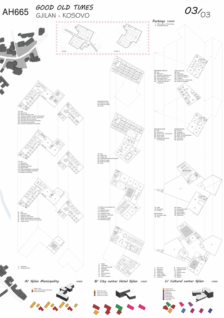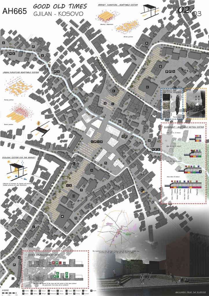 This project is a bit different from the others since it is treating the space with smaller structures. What is specific about this project is that it is fragmenting the space by creating smaller public spaces. This is done by these small structures that have to be built around the intervention area. All the functions are spread along the axis. The main square is functioning with 3 types of building.